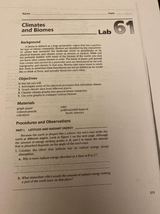 Solved Name Date Climates And Biomes 61 Lab Background A Chegg Com