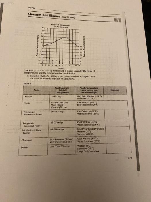 Climates and Biomes Lab 61 Answer Key